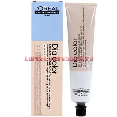 Loreal Dia Color — сочетает в себе революционную технологию восполнения меланина, высочайшую концентрацию натуральных компонентов и отсутствие аммиака, он позволяет добиваться безупречного сияния, естественной цветопередачи и стойкости до 6 недель.